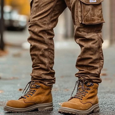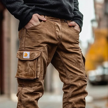 Men's Vintage Suede Outdoor Chic Multi-pocket Cargo Pants Trousers